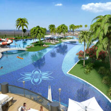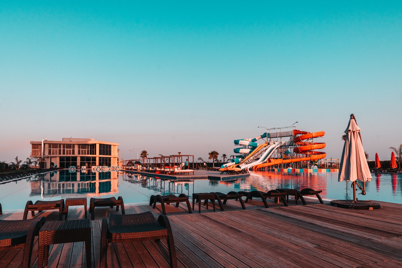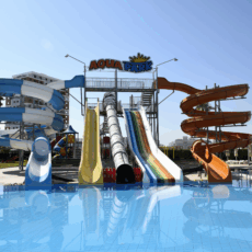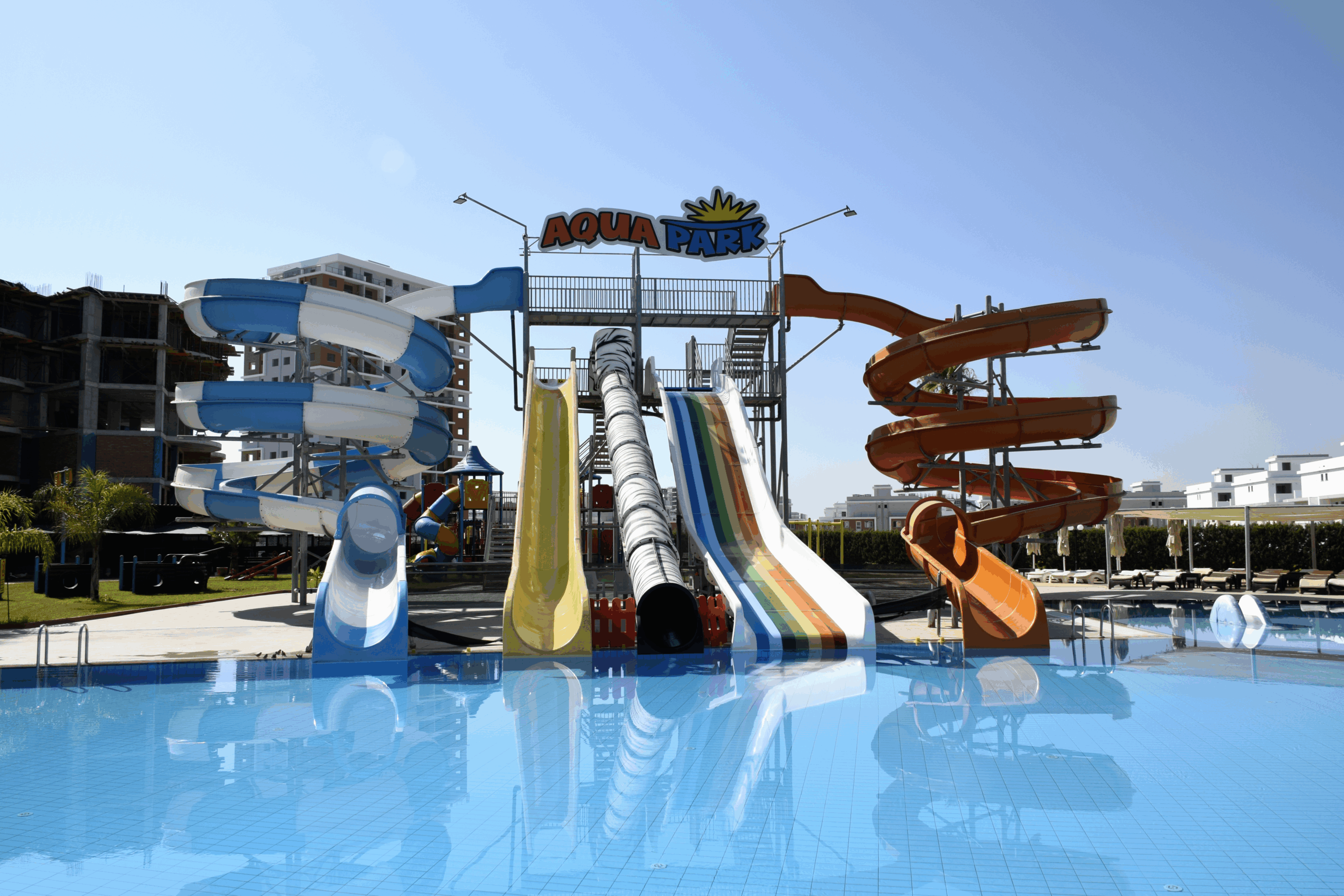 - Огромная территория (6000 м² бассейны + аквапарк)